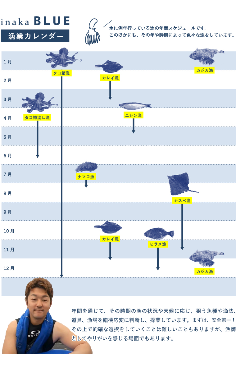 私はこの荒れる日本海に真摯に向き合うことで、漁師としての経験を積んできました。荒々しい海も時にはおだやかな表情を見せ、海の恵みを私たちに分けてくれます。この海と生きて32年、これからも漁業を通じてこの海を皆さんにおすそ分けできるよう、漁師としての技術向上はもちろん、新しい取り組みにも前向きにチャレンジしていきます。
