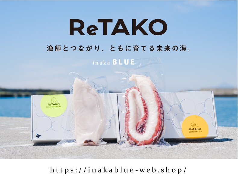 ReTAKOを通じて、inakaBLUEの拠点である北海道苫前町から全国へ、海の恵みとそのおいしさの再発見、資源としてのその現状やそれらを取り巻く環境へのご理解、そしてそれぞれができる自分なりの次なるアクションを考える、そんな広がりが少しずつでも生まれていくといいなと思います。まずは食べて、味わって見て下さい◎