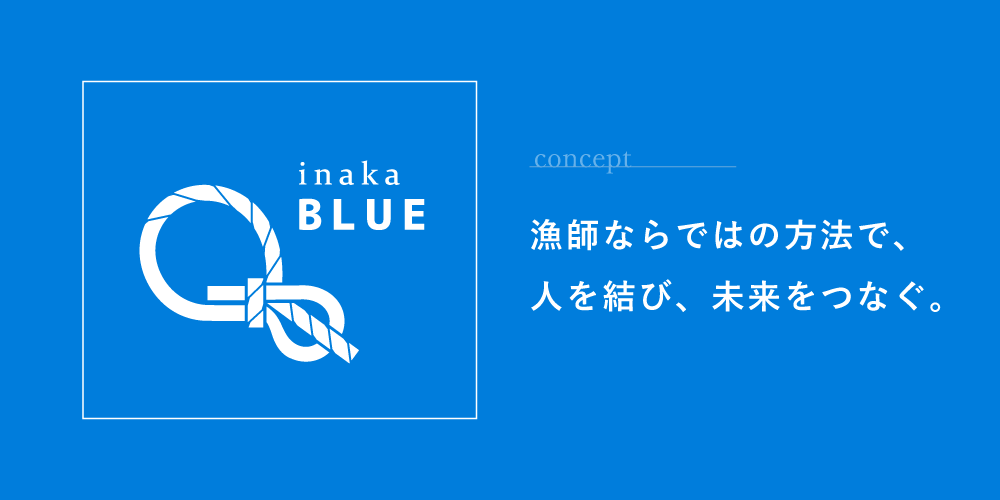 私たちは、そんな漁師になじみの深いロープの結び方の代表格である「もやい結び」を、inakaBLUEのコンセプトを表現するモチーフとして使用し、デザインしました。