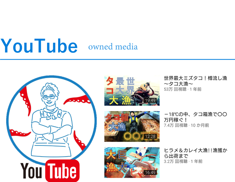 2020年6月より、YouTubeチャンネル「漁師たこーいち/北海道のひだりうえ」の運営を開始。漁業の楽しさや魚の美味しさ、北海道の魅力を多くの方に知って頂き、身近に感じてもらえるよう動画・ライブ配信を行っています。